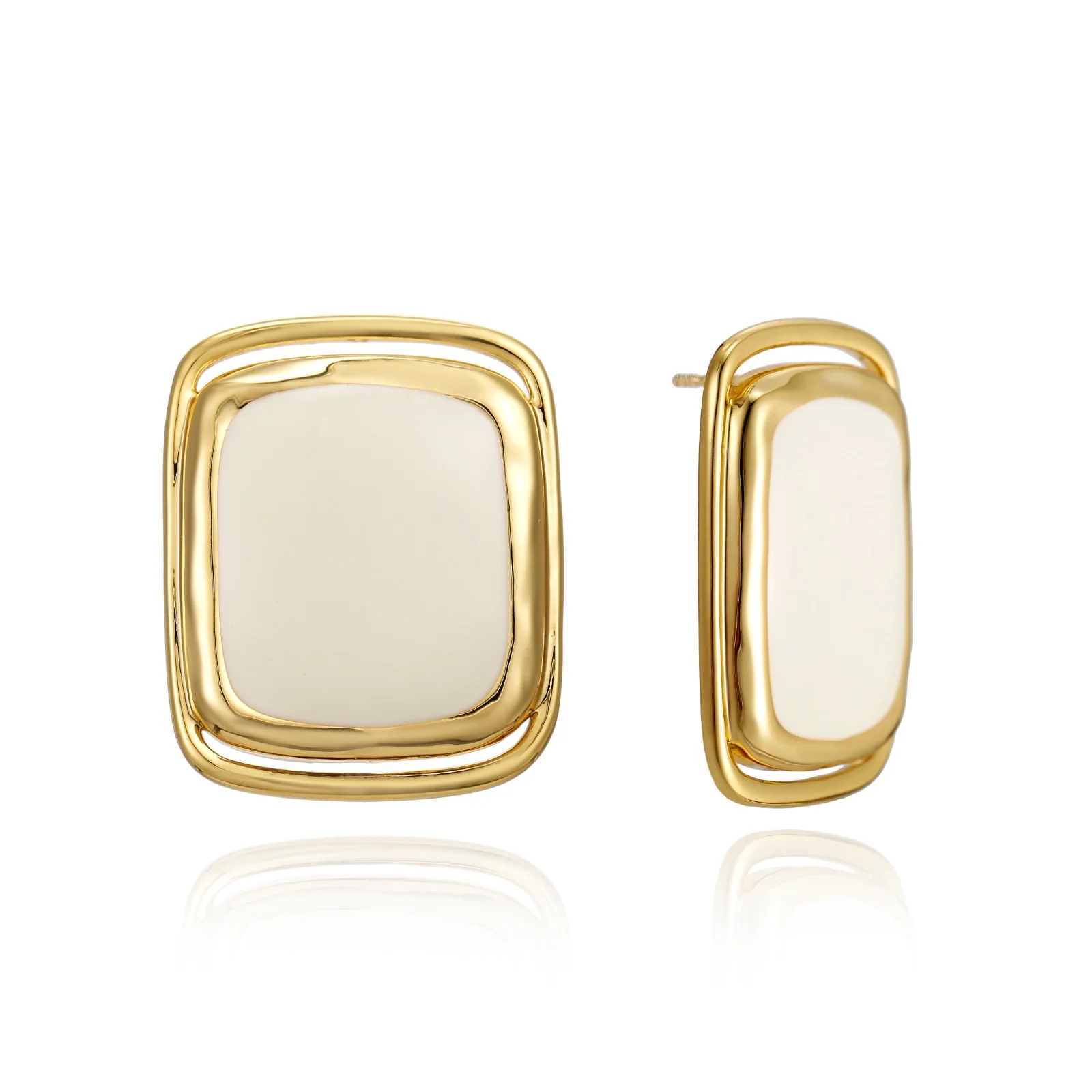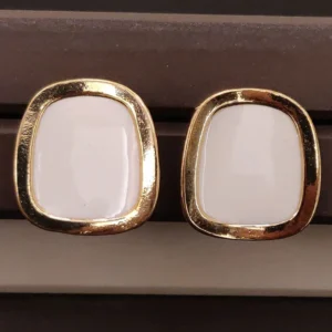 Each Gold Plated White Big Square Stud Earring features a bold and striking square design. The white center is framed by a luxurious gold plating. This combination creates a sophisticated look, suitable for both casual and formal events.