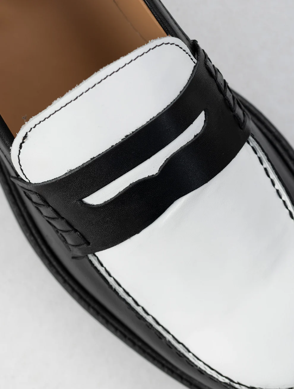 – Two-tone 100% leather upper